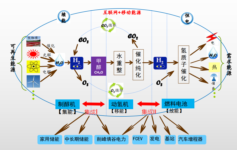 多种能源变甲醇,甲醇变 成人们需要的能源;