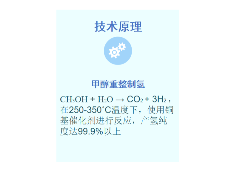 水氢机是采用催化重整及 纯化多项技术从醇水中获得高纯 氢,通过质子膜系统产生电、热 等多种能源的装置。